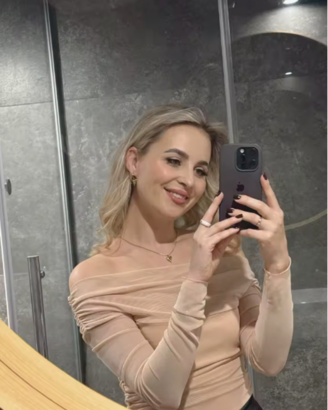 "Looks better in real life than I expected. Soft shine, very wearable."